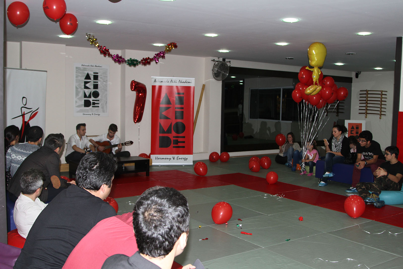 Aikimode Aiki Akademi’nin 7. Yılını Cumartesi ve Pazar antrenmanları ile kutladık. Çocuklarımız hediye oyuncaklarını ve çikolatalarını aldı. Yetişkinler ise cumartesi akşamı yapılan 7. Yıl partisine katıldılar. Partide bol bol aikido sohbeti’nin yanı sıra canlı müzik de vardı.