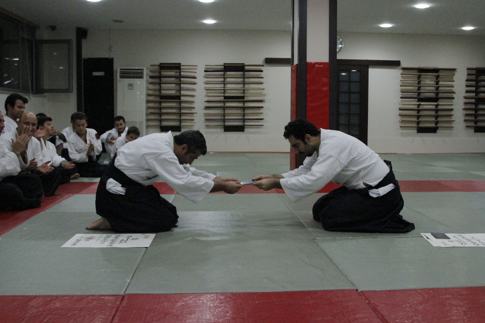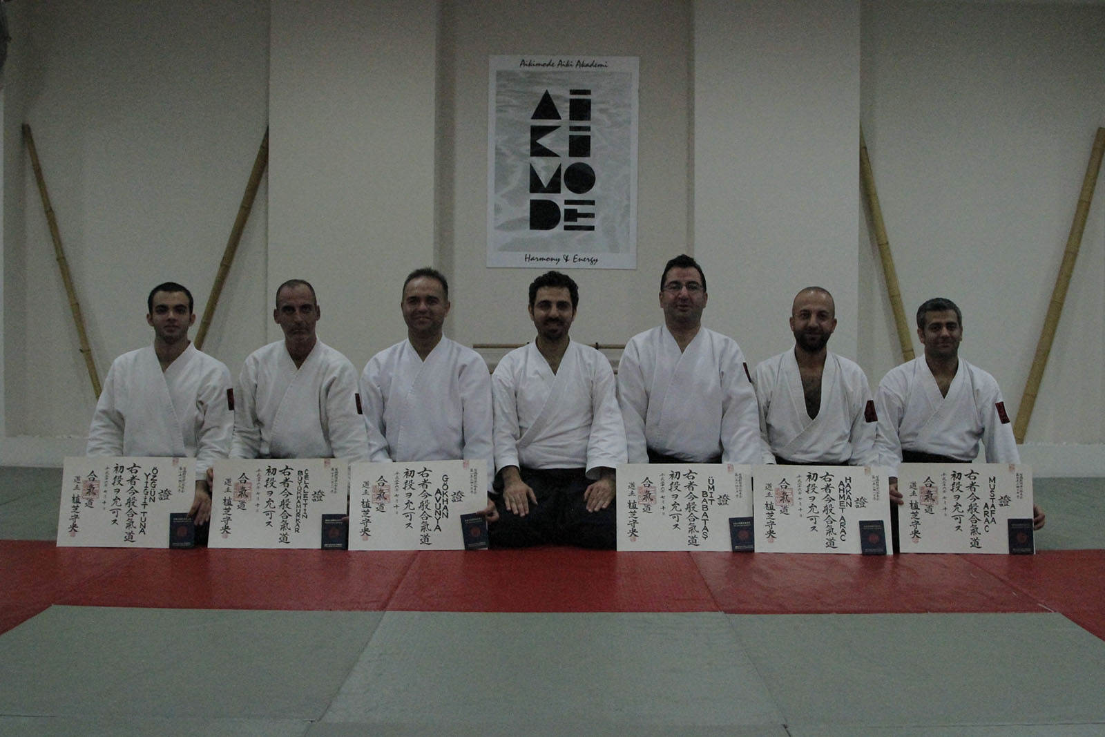Aikimode Aiki Akademi’nin yeni 1. Dan öğrencileri Aikikai diplomalarını düzenlenen törenle aldı.  Diploma töreni öncesi yapılan kıdemli antrenmanına yaklaşık 30 öğrencimiz katıldı. Antrenmanda ”ki” akışı üzerine yoğunlaşarak akıcılığın önemi vurgulandı. Hiç bir şeyin durmadığı hareketin hep var olduğu bir evrende devamlılığın ve daireselliğin önemini vugulayan Oğuzhan Sensei, savaş sanatlarının inceliklerini öğrencilerine anlattı.