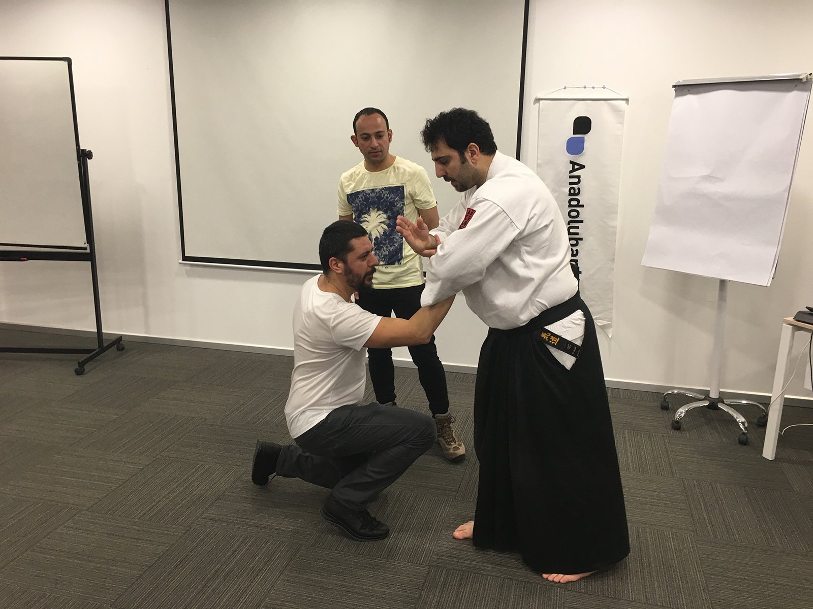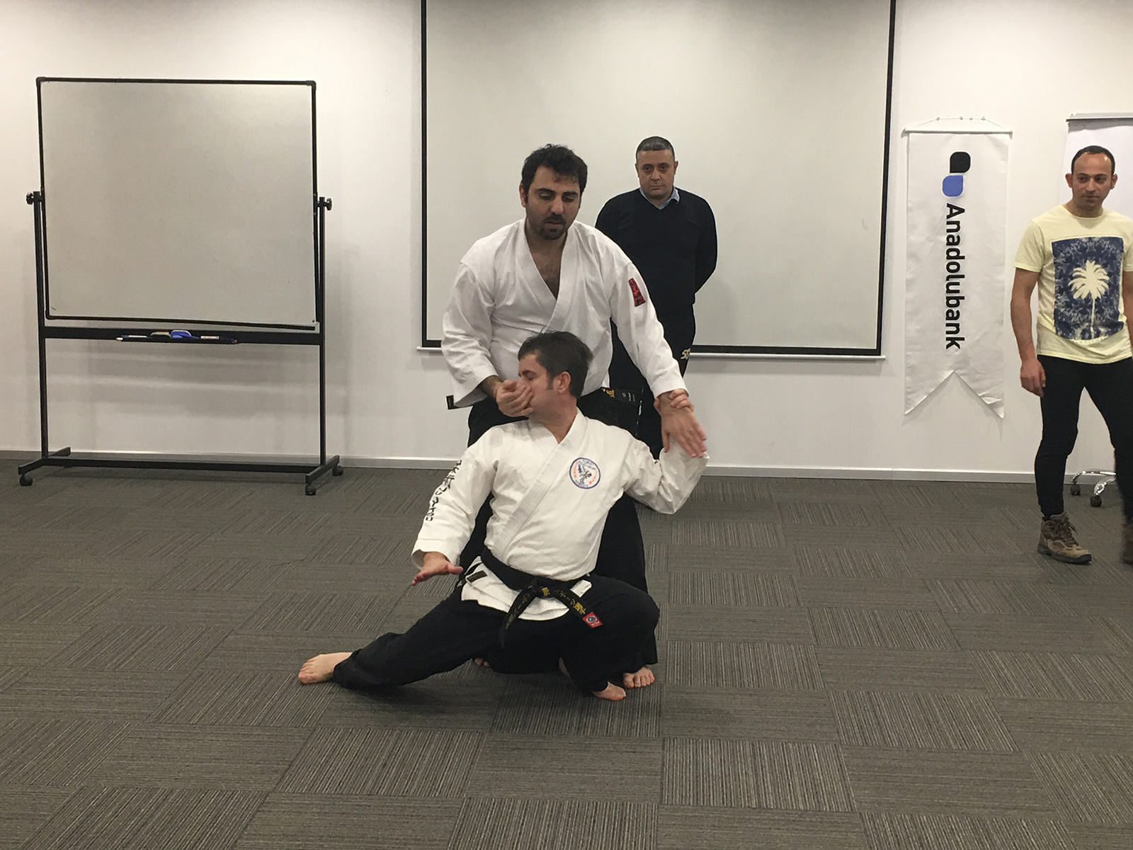Anadolubank Genel Müdürlüğü’nde bankanın erkek çalışanları için ”Özel Savunma” eğitimi Aikimode Aiki Akademi kurucusu Sensei Oğuzhan Ulvi Başkurt tarafından verildi. Eğitimde yaşanılabilecek senaryolar üzerinde durularak çalışanlara problem çözme teknikleri anlatıldı. Fiziksel saldırılara karşı koymayı, yönlendirmeyi, zaman kazanma ve etkisiz hale getirmenin tecrübe edildiği eğitimde Anadolubank Yönetici adayları eğitimi başarı ile tamamladılar.
