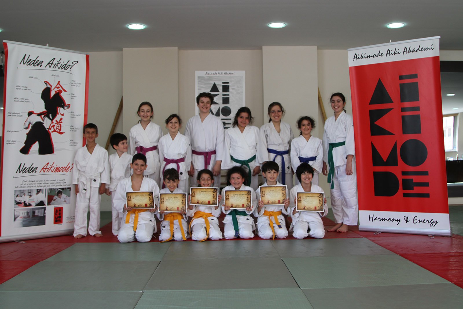 Aikimode Aiki Akademi’deki yapılan derecelendirme sınavında başarılı olan yetişkin ve çocuk öğrencilerimiz kuşaklarını ve sertifikalarını başarı ile aldılar. Tüm velilerimiz çocuklarının elde ettiği başarıdan ötürü mutlu ve huzurluydular.