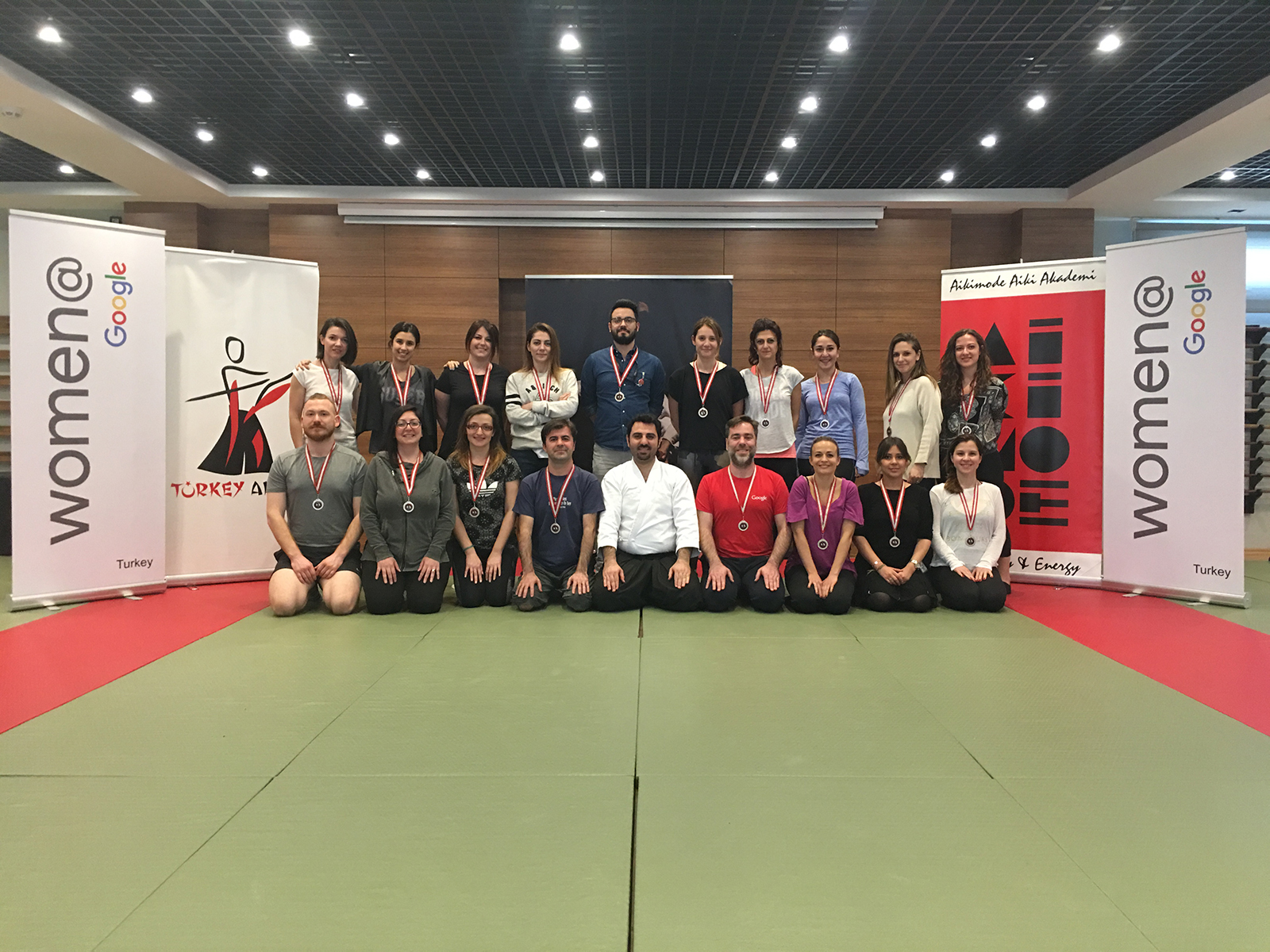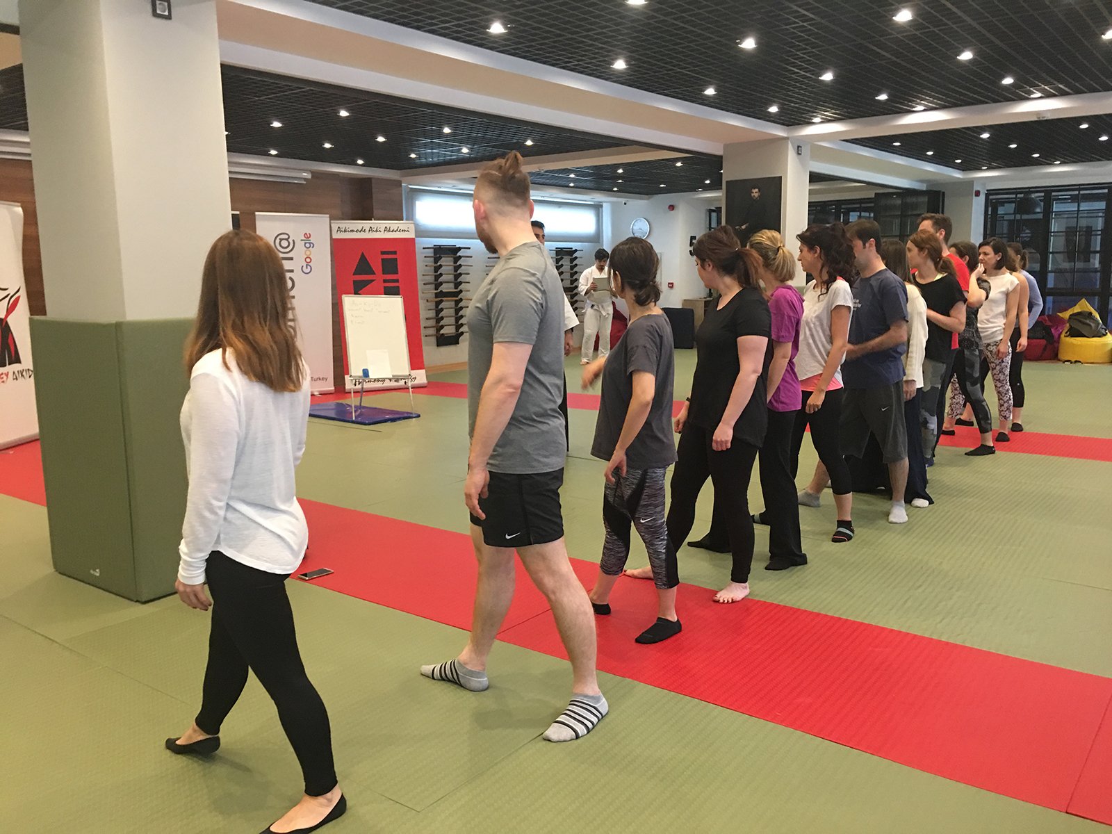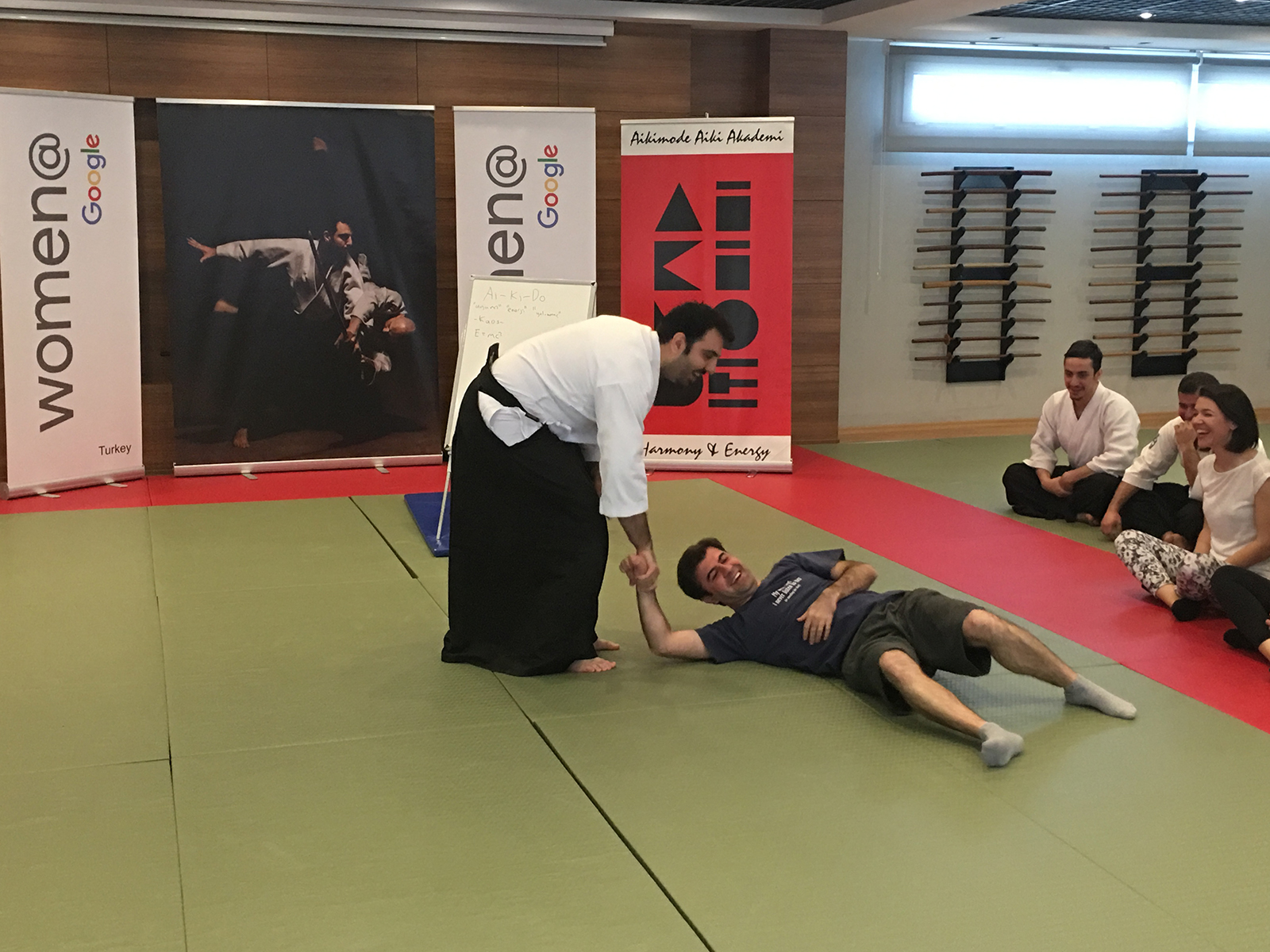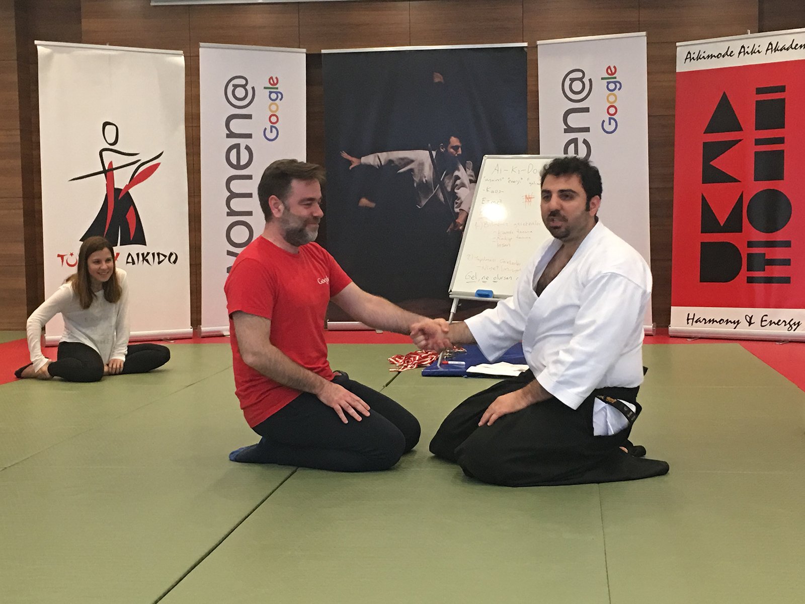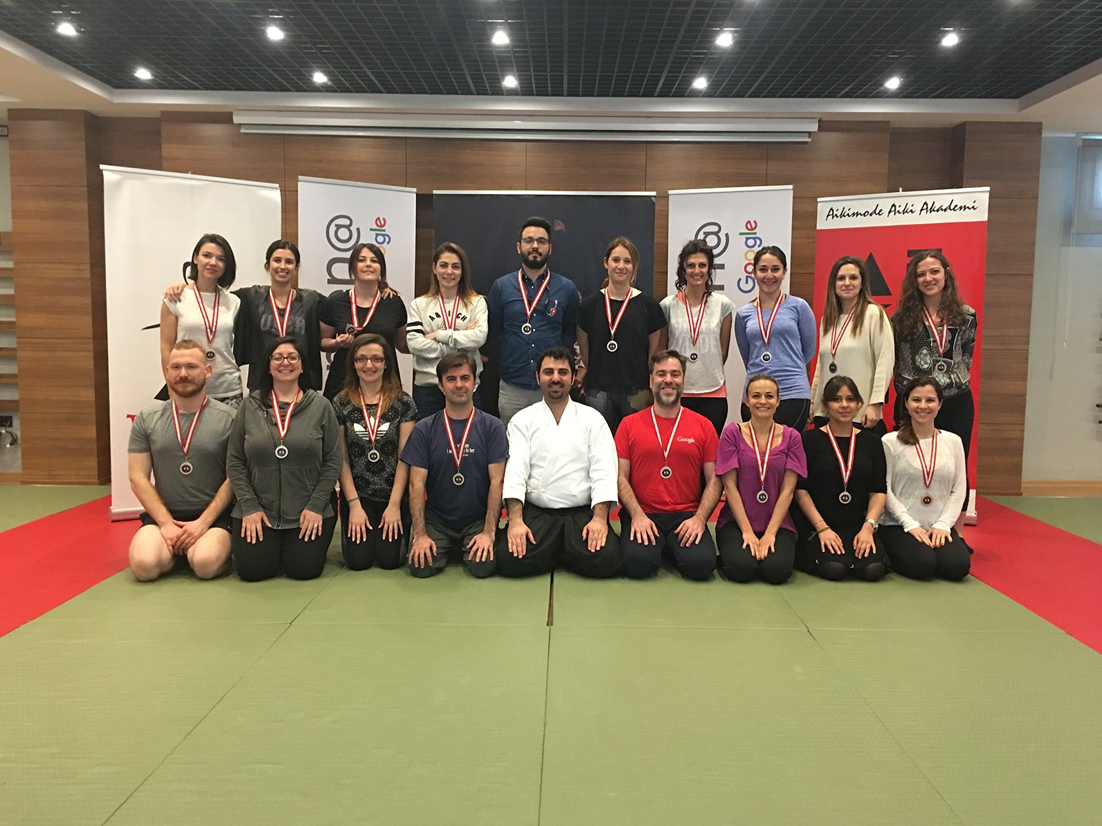 21 Nisan Cuma günü Google Türkiye ekibi Aikimode Aiki Akademi’nin 4.Levent’teki genel merkezinde misafirimiz oldu. Google Türkiye için özel tasarlanan ”İş yaşamında Aikido ile problemleri çözme sanatı” eğitimi başarı ile tamamlandı. Enerjisi yüksek, neşeli ve öğretici geçen eğitimde aikido felsefesi ile iş yaşamda nasıl başarılı olunabileceği katılımcılara aktarıldı. Dünya’nın en büyük firmalarından biri olan Google büyüklüğünün nedenini çalışanlarına kattığı değer ile ortaya koyuyor. Oğuzhan Başkurt Sensei’nin etkili anlatımı ile Google çalışanlarına verilen başarılı olabilme eğitimine katılan tüm çalışanlara sonsuz teşekkürler.