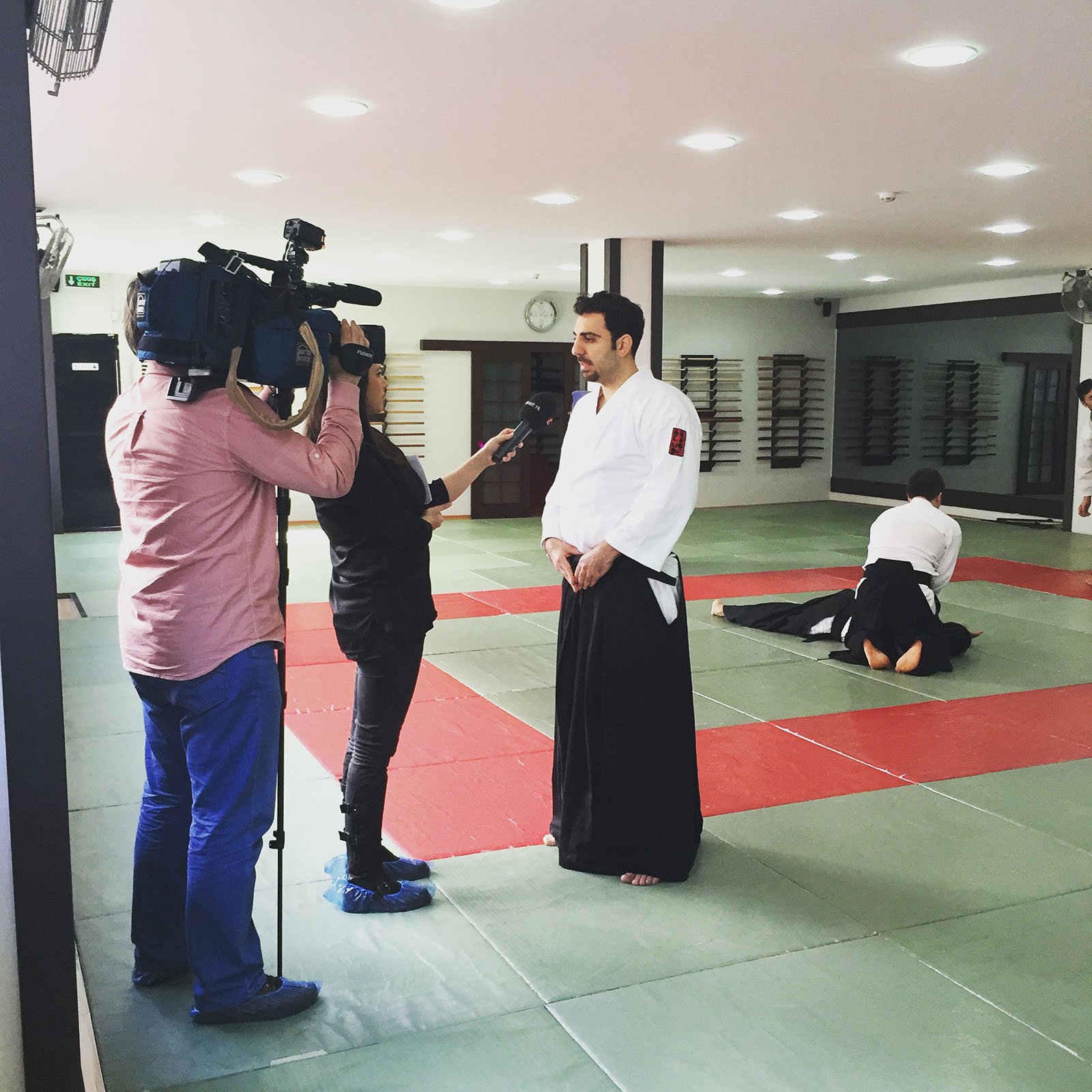 Oğuzhan Başkurt Sensei Kanal Türk’te Ana Haber bülteni için hazırlanan Aikido sanatının tanıtımında kamera karşısındaydı. Aikido’nun yoğun stress altında çalışan bireyler için yararlarından bahsedilen haberde bu sanatın aslında bir insanlar için bir ihtiyaç olduğu vurgusu yapıldı. Çocuklar, gençler ve yetişkin tüm bireyler için hareket etmenin ve vücuda fonksiyon kazandırabilmenin aikido ile mümkün olduğuna da değinildi. Haberi tamamını aşağıdan izleyebilirsiniz.