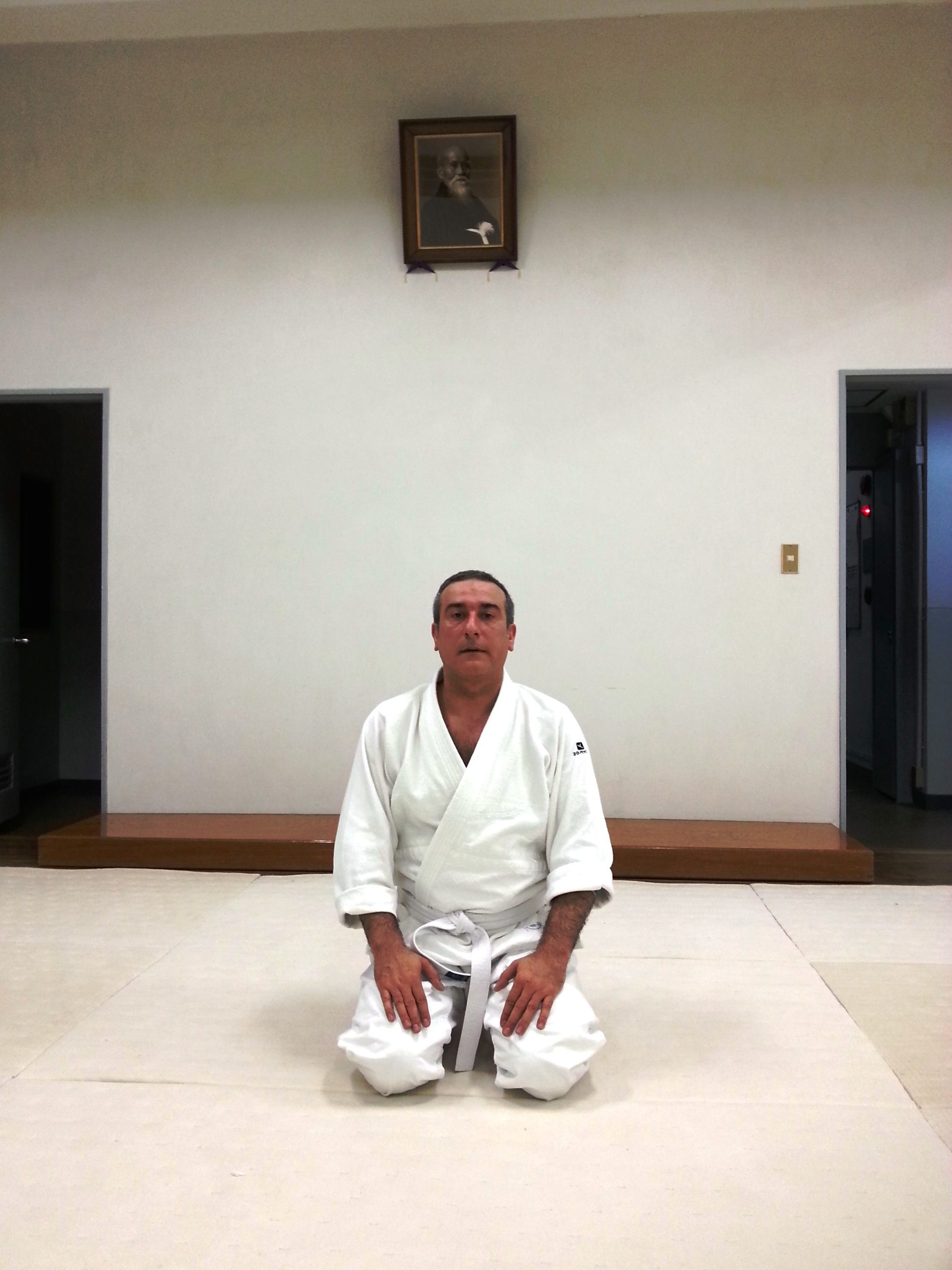 Madem Doshu?nun sınıfına katılamadık bari oğlunun sınıfına katılayım diyerek 18 Nisan saat 06.15?te Dojo?da hazır bulundum. Mitsuteru Ueshiba senseinin Dan seviyesi belirtilmiyor. Kendisi Dojo-Cho olarak geçiyor. Soyunma odasında hazırlandıktan sonra 3. Kat tatamiye göz attım ağızına kadardoluydu. Zira 06.30 da başlayacak ders Doshu?nun dersiydi. İçeride hamakasıolmayan kimseyi görmedim. 2. Kat tatamide ısınmaya başladım. Bu arada ilk bengitmişim henüz kimse yoktu.