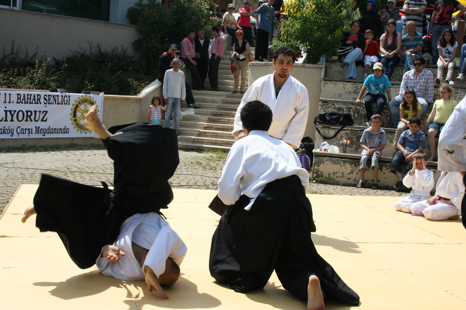 Kıdemli öğrencilerimizde Devrim Erdoğan ve Yiğit Tuna’nın aikido performansları seyirciler tarafından tam not aldı. Özellile yüksek düşüş tekniklerinde tecrübelerini konuşturarak iyi birer aikidoka olma yolunda ilerlediklerini kanıtladır.